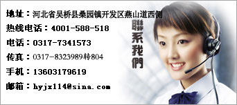 地址:河北省吳橋縣桑園鎮開發(fā)區燕山道西側 熱線電話:4001-588-518 郵編:061800 電話:0317-8323988 傳真:0317-8323991